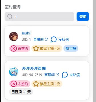 在弹窗的签约查询中可以快速查询 UID 和直播间号的签约状态。